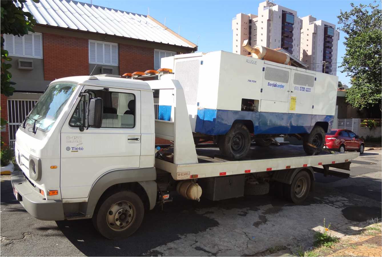 Locomoção de equipamentos pesados em geral como geradores, compressores e etc. Utilizamos de uma plataforma hidráulica para executar o carregamento e descarregamento o que facilita e agiliza o processo.